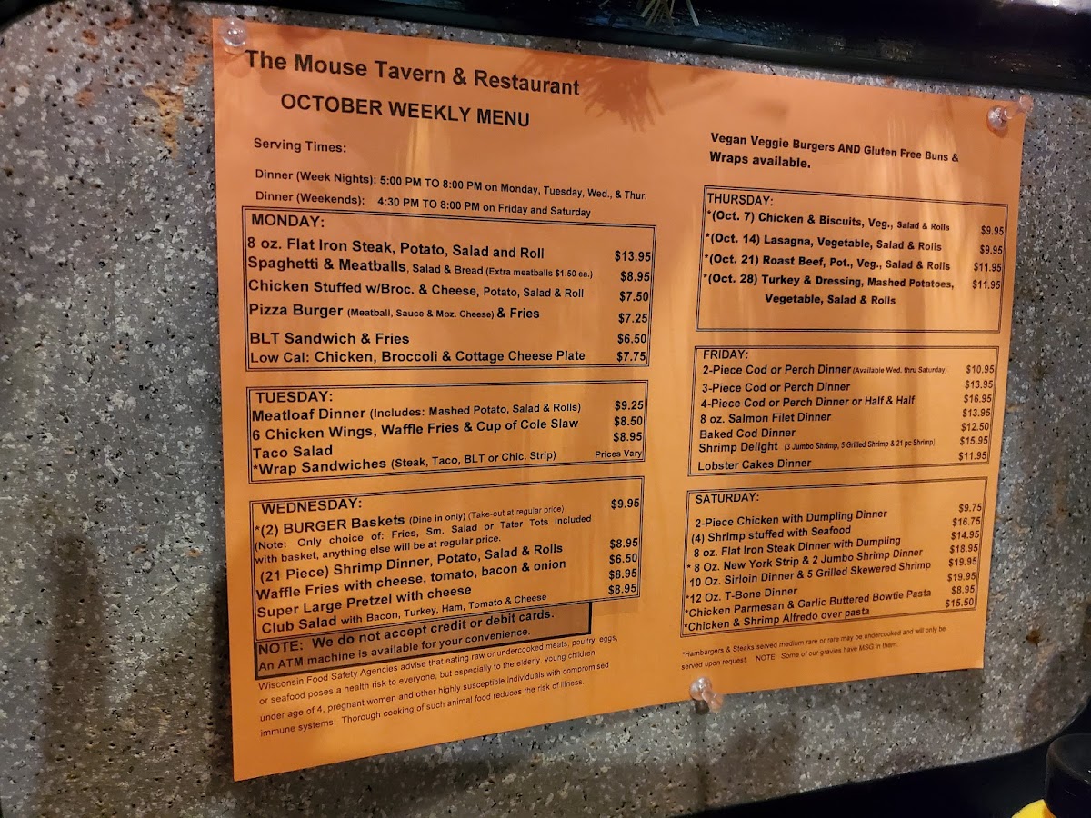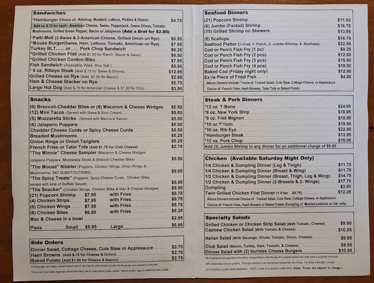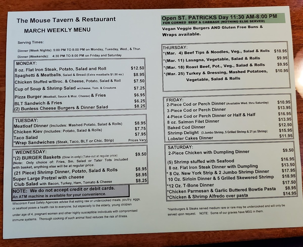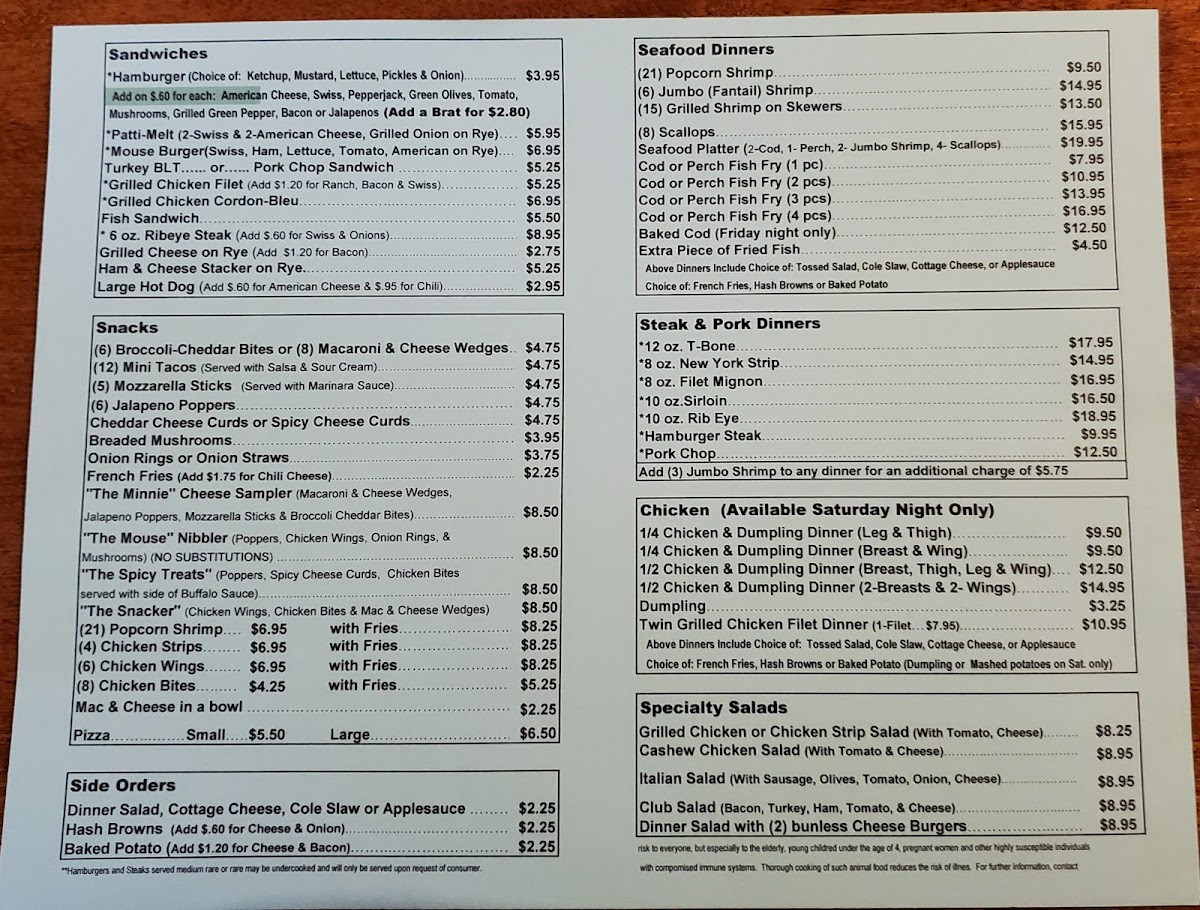 Mouse Tavern & Restaurant Menu